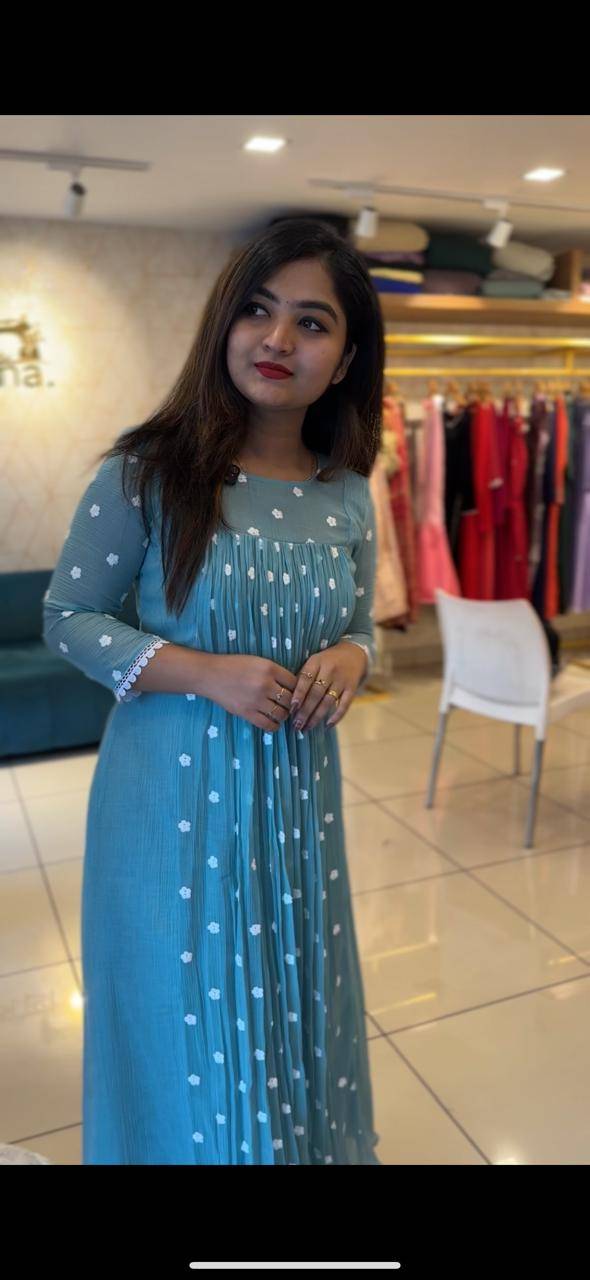 Discover the perfect blend of style and comfort with our exquisite A-Line top, crafted from high-quality crushed Chandheri fabric. This beautiful garment features a flattering A-line silhouette that gracefully drapes on any body type, making it a versatile addition to your wardrobe.