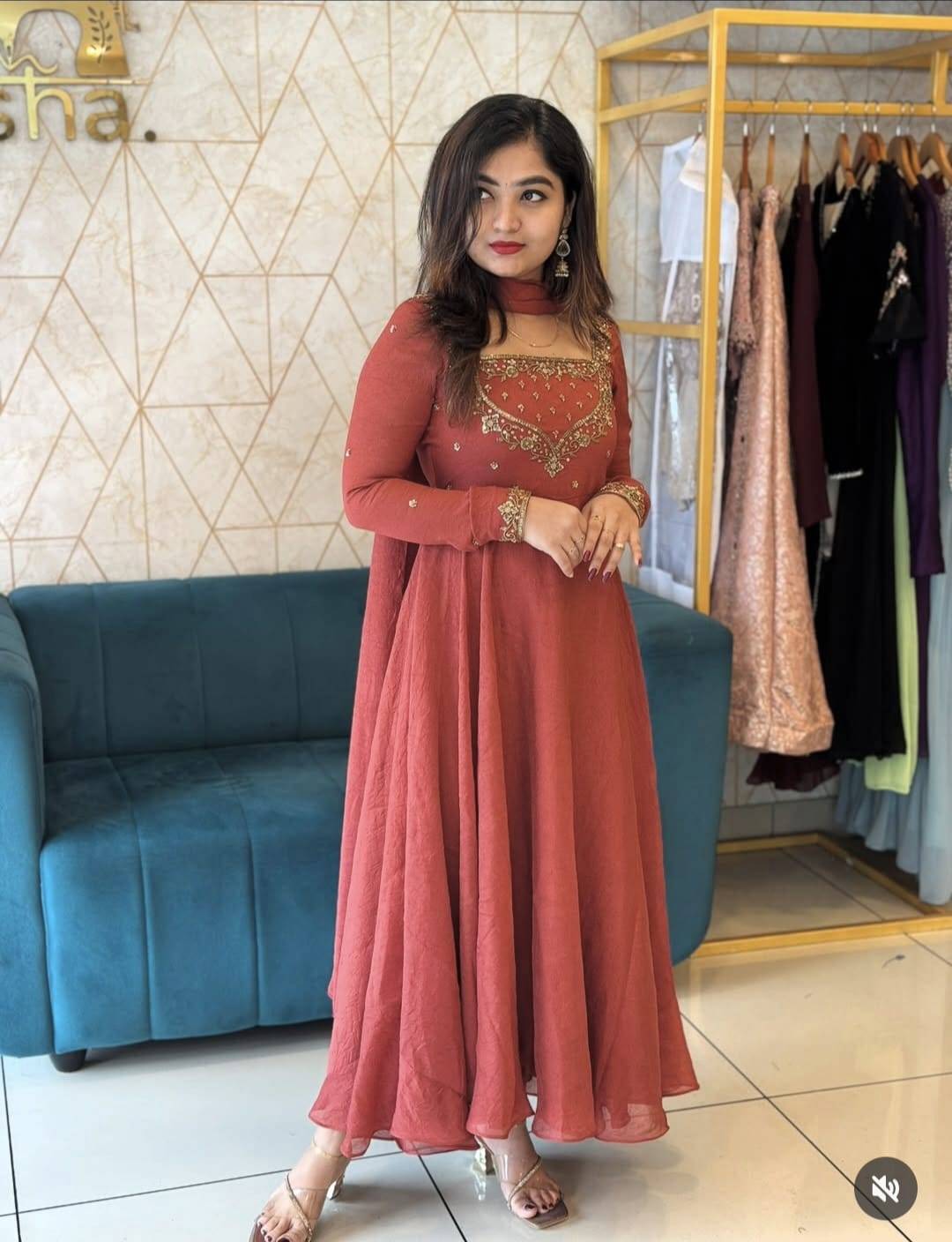Rediscover traditional elegance with a contemporary twist. Upgrade your style with our Anarkali ensemble today!