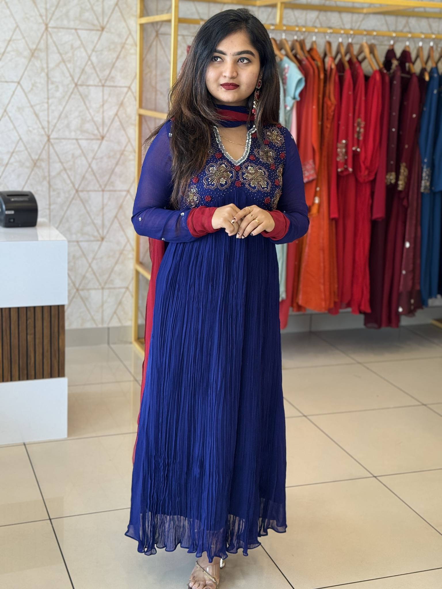 Introducing the exquisite Aliacut Top and Dupatta, a perfect addition to your wardrobe. Crafted from high-quality georgette, this elegant ensemble features full sleeves and is designed to flatter with its meticulous detailing and comfortable fit.
