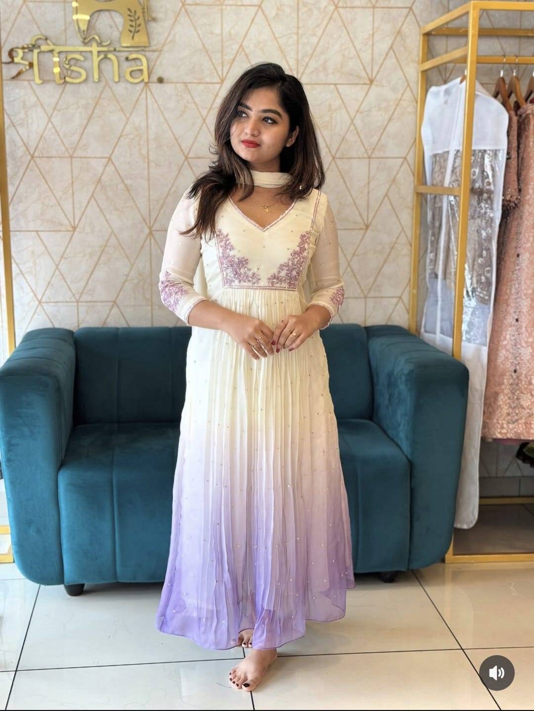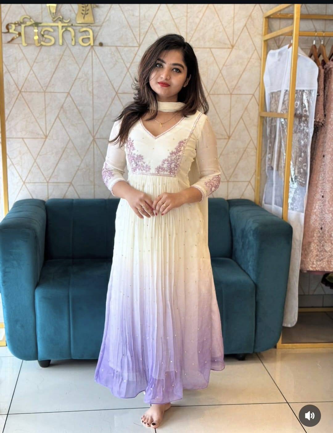 double shade lavender jute organza kurti