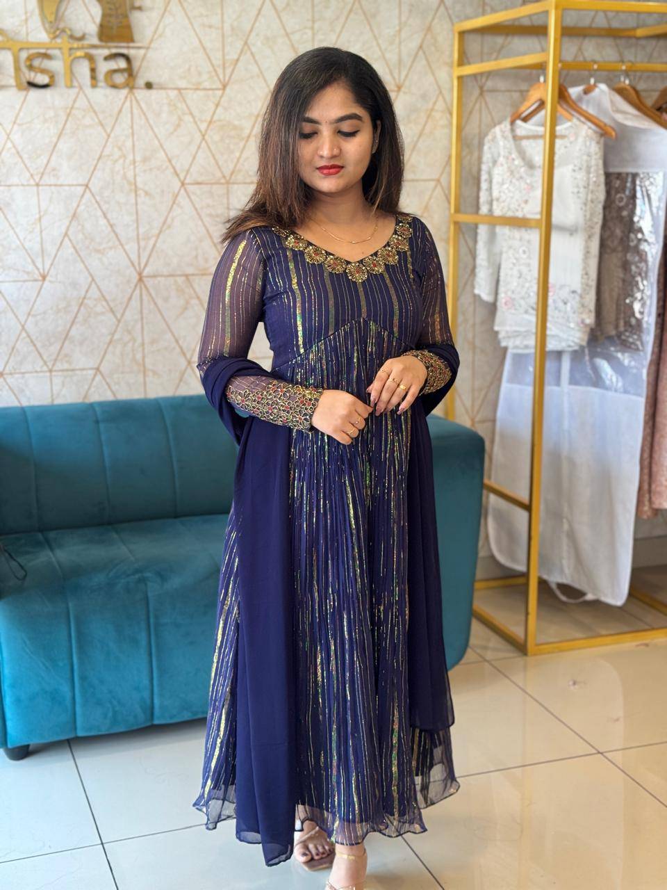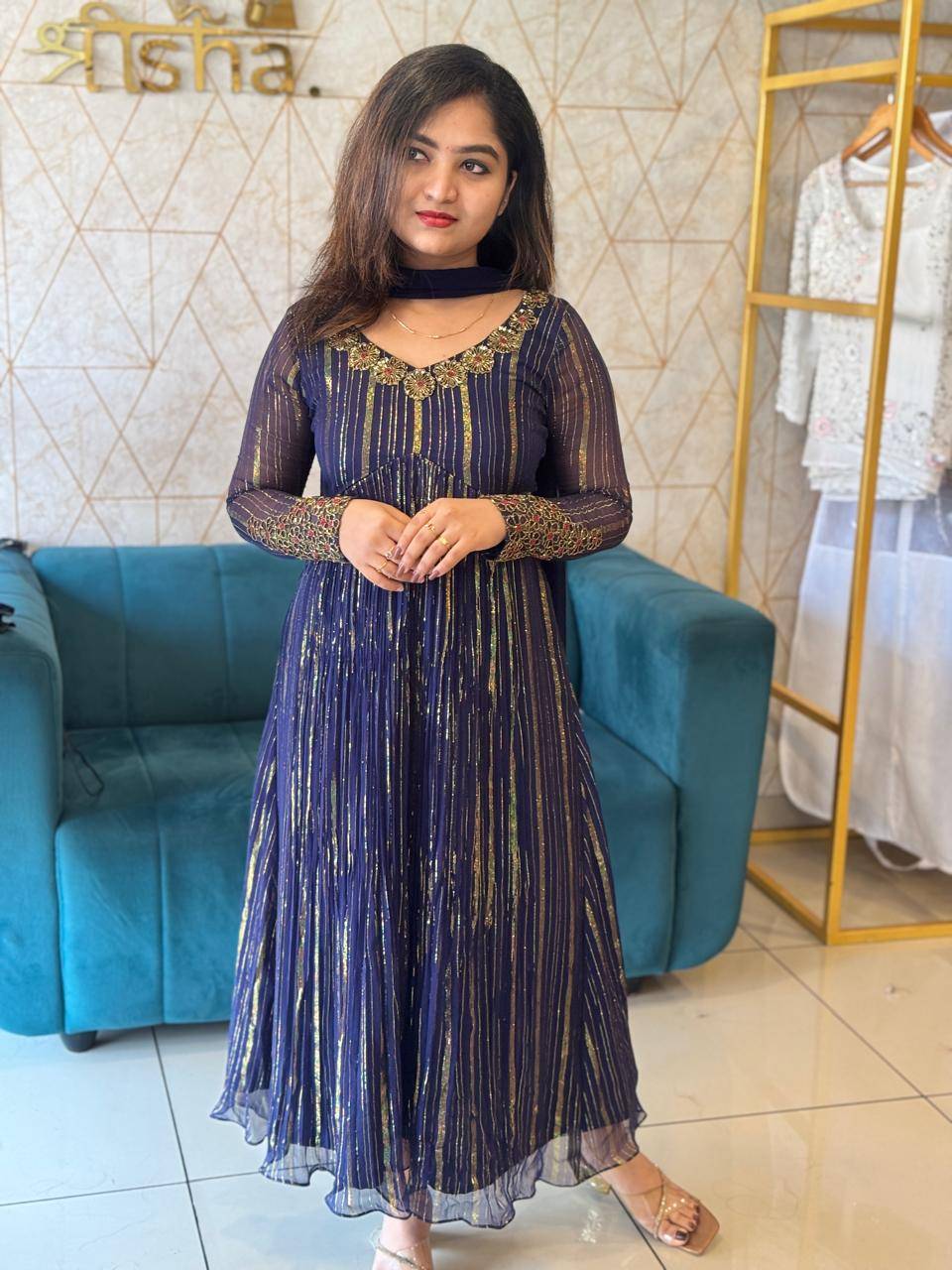 georgette lurex A-line kurthi