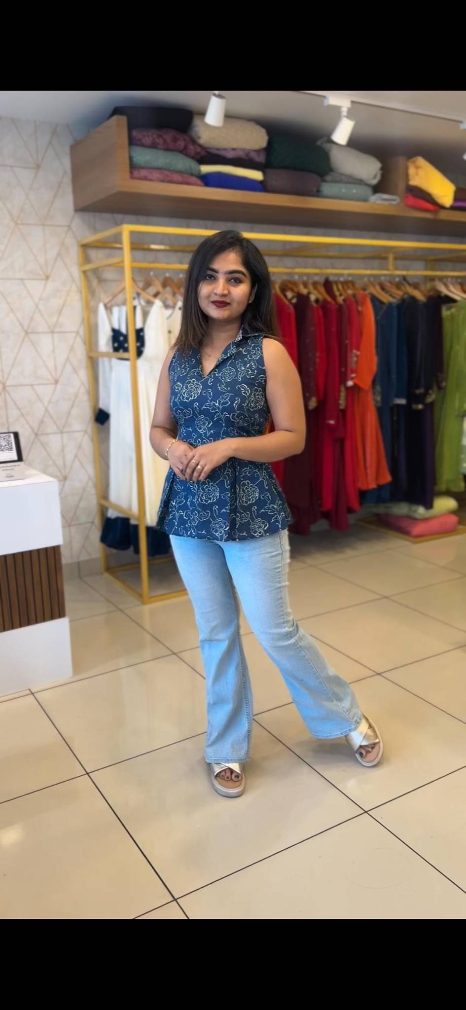 The model in the image stands at a height of 156 cm, showcasing the flattering fit and contemporary design perfect for your casual outings or dressed-up events.