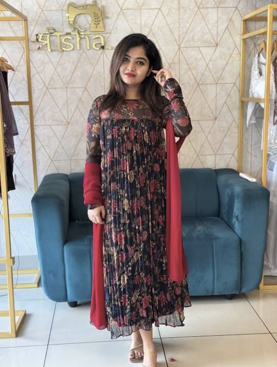 Elevate your ethnic wardrobe with our Soft Drape Chinon Kurti Set, featuring an exquisite A-line silhouette that flatters all body types. Crafted from high-quality chinon fabric, this top and dupatta ensemble is not only stylish but also comfortable, making it perfect for both casual outings and festive occasions.