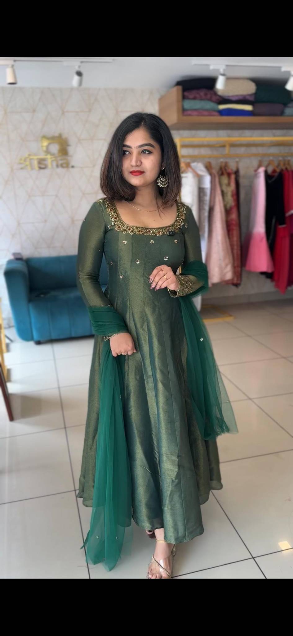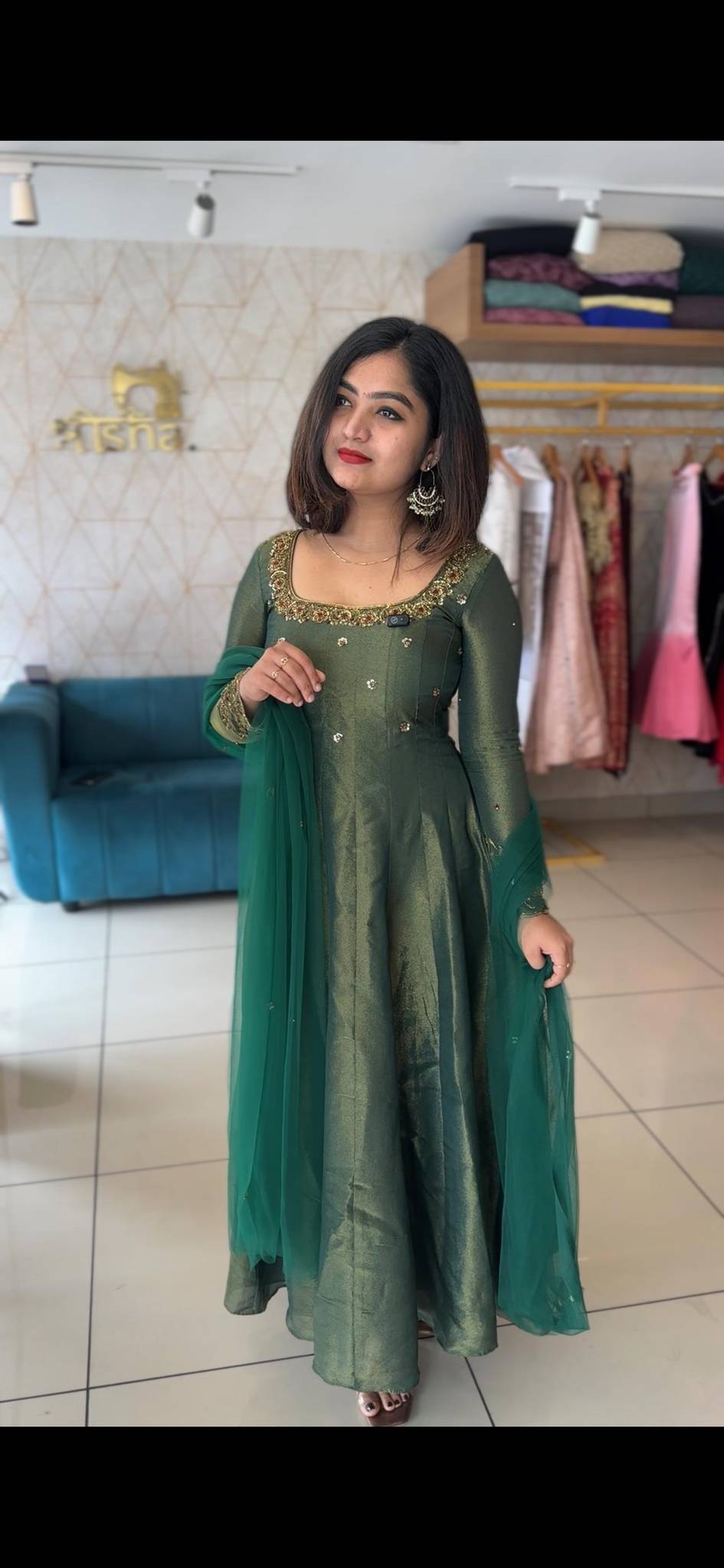 Elevate your wardrobe with our exquisite Anarkali suit, featuring a stunning panel cut design. This set includes a beautifully crafted top and a matching dupatta, perfect for any occasion. Made from premium tissue material, this outfit is not only stylish but also comfortable to wear.