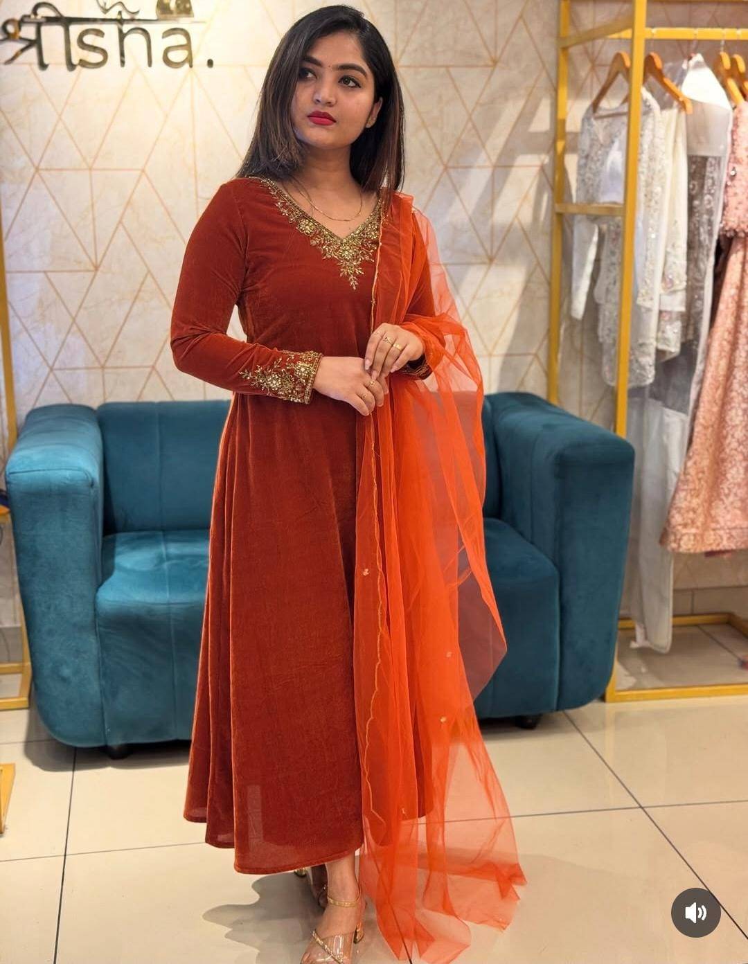 Elevate your wardrobe with the Velvet Grace A-Line Top with Dupatta, where elegance meets versatility, making it a perfect choice for celebrations and formal occasions alike.