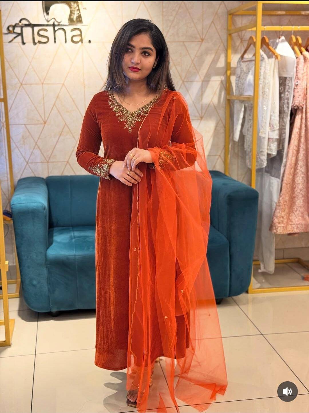 Introducing the Velvet Grace A-Line Top with Dupatta, a perfect blend of elegance and comfort crafted for the modern woman. This stunning ensemble features a beautifully designed A-line cut, enhancing your silhouette while ensuring ease of movement.