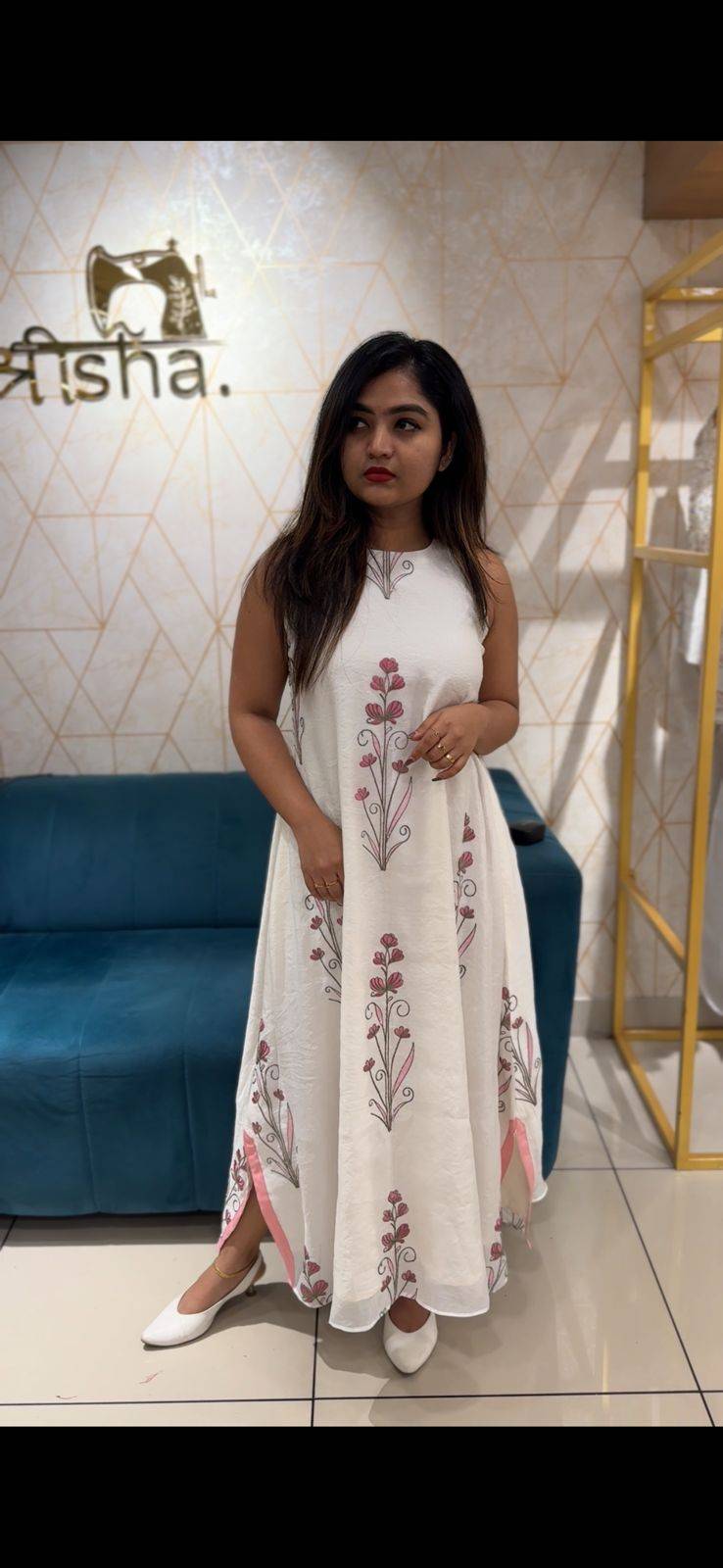 Elevate your wardrobe with our exquisite A-line top made from luxurious viscose chandheri. This stunning piece features an elegant design that complements various body types and offers a stylish silhouette. The kurta includes attachable sleeves, allowing you to customize your look according to your preference.
